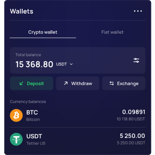 Various wallets. Total freedom. With Find Money Fast Fast, you can hold and manage both crypto (like USDT, BTC, ETH) and fiat currencies (like USD, EUR) in one place.